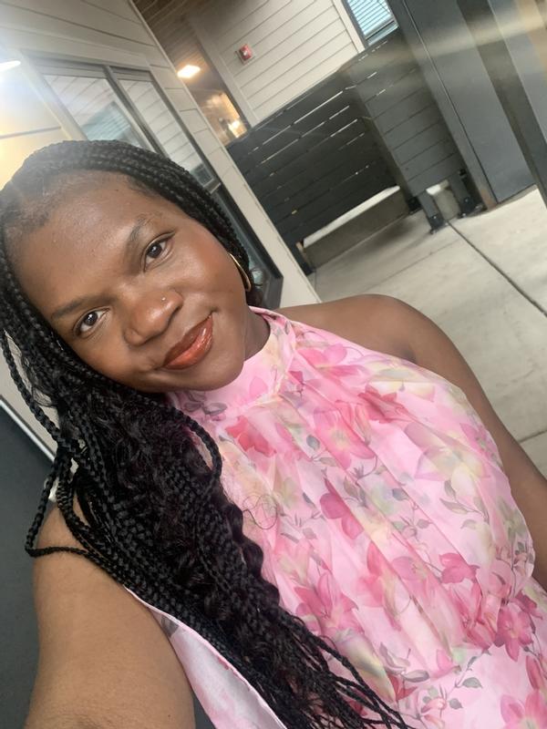 This dress has a beautiful floral print. The halter style neckline is very flattering on. I was hesitant about the flowy top, but it does show a waistline. I am so glad I purchased this perfect summer dress. Runs true to size.