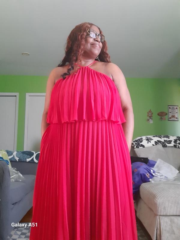 This is the perfect dress for a summer wedding. The color is a gorgeous, vibrant red. Suggest sizing down.