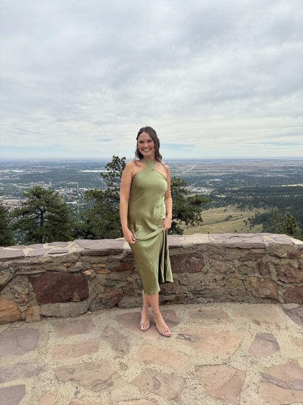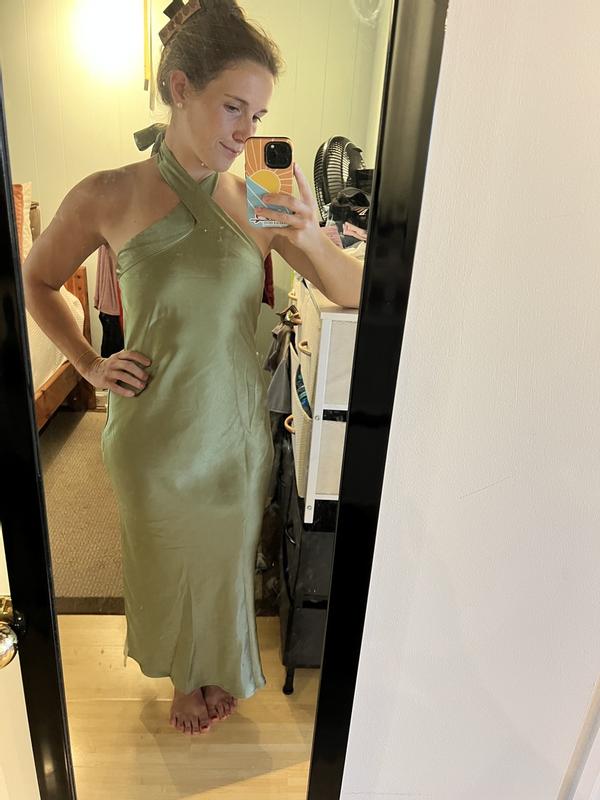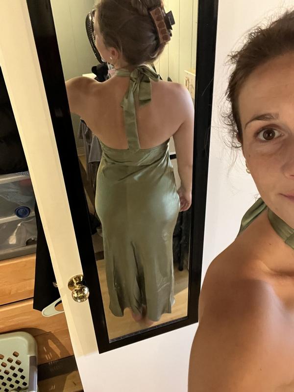 This dress was very flattering from the front and I love the material - it feels like it’s good quality and has a satin-y feeling. I thought the pink would wash me out but I don’t think it did. My only complaint is that the back kept falling down in an unflattering way. I think it needs to be tighter around the body to stay up