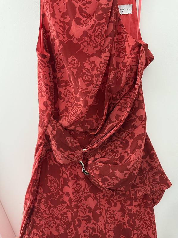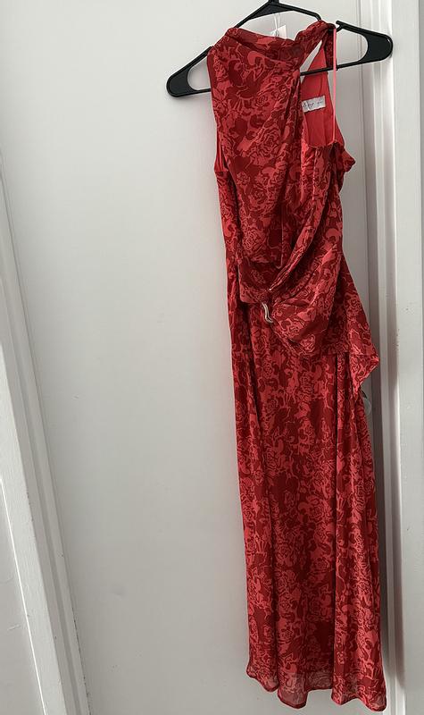 The dress paired beautifully with a black blazer jacket for an outside fall wedding. I love the print and bold red orange color. The dress was comfortable and easy to get into/take off. Bonus, it photographs well in pictures.