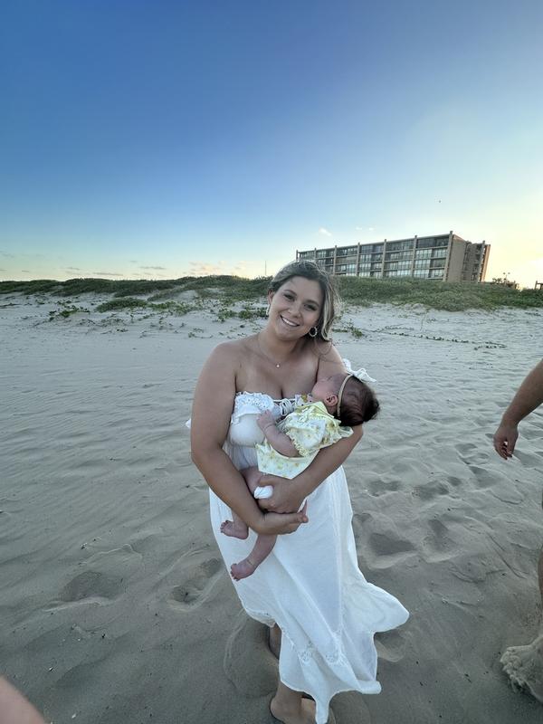 So happy with this purchase! Dress is true to size and flattering. My only comment is it’s a bit low cut.