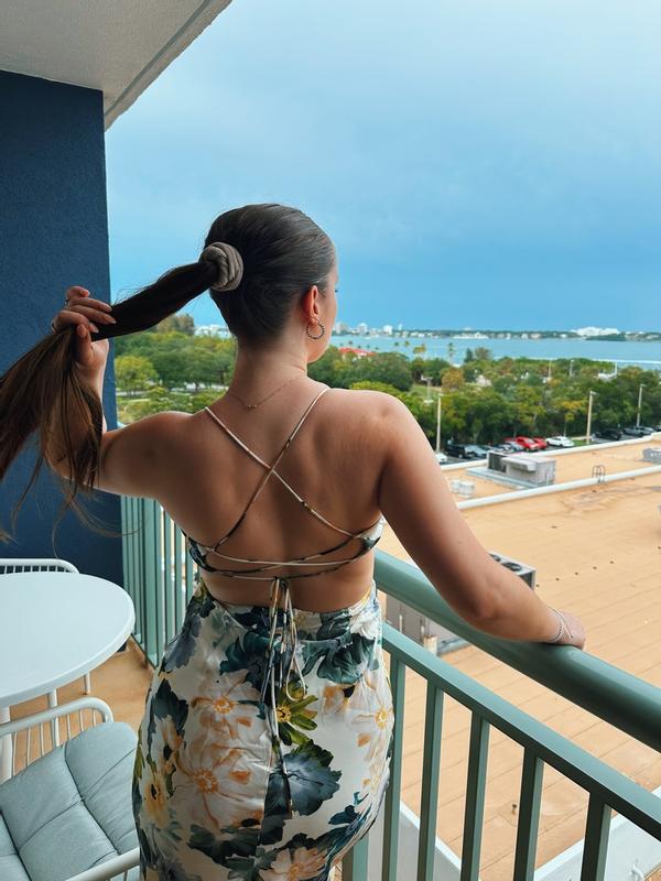 Beautiful dress, silky soft and lays perfecly. The only issue is trying to tie it up in the back.