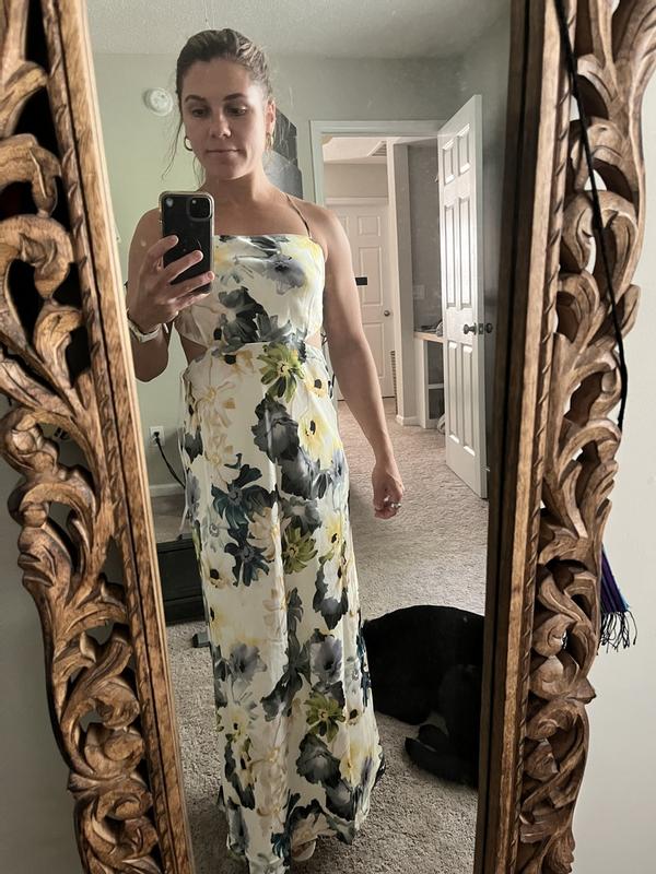 I ordered this dress because I loved the print and the silhouette. I had some reservations about the side slits and open back (I'm more modest and will wear this with a light sweater), but thought I'd give it a try. I am not dissappointed. It's the perfect wedding guest dress for me. The fabric is soft, smooth and thick enough not to be see through (the skirt is lined, but bodice is not). I'm 5'1" and the length is perfect. I don't need to hem it at all. I'll be wearing this for a Vegas wedding in October. Petal and Pup is now my go to store for special occasion dresses. I love the selection, style and reasonable pricing.