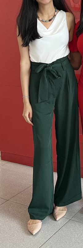 Wore these gorgeous emerald green pants to a holiday party. They made me feel dressy and got compliments. They do run a bit small. I'm 5 ft 8, 125 lbs for reference. My usual size is 6 and I saw the comments to size up, but 8 was sold out. These were a bit tight, but I managed. Length was perfect since some brands are too short with no way to make them longer.