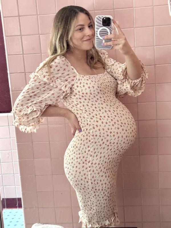 So cute and flattering! I’m 5’4 and range between small and medium. I got the US6 and it fits great. The smocked material is so stretchy. Color is a true ivory with pink/maroon flowers. Not see through is a plus! Hope this helps!