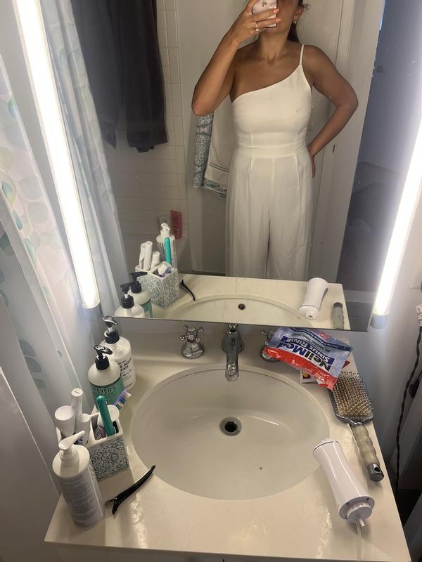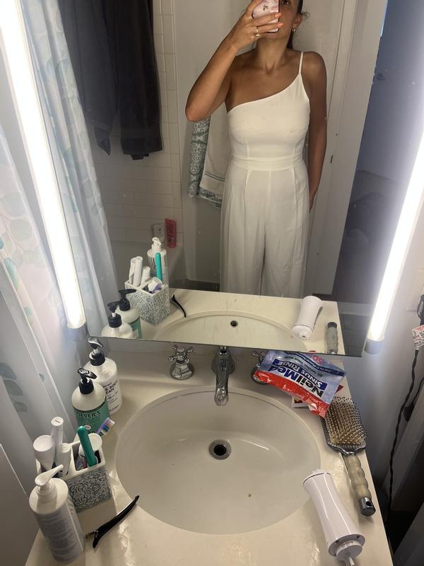 This jumpsuit was cute in theory but when I tried it on, the material was scratchy and so thin you could see the seams of the outer later, the lining, and the outline of the (nude!) thong I had on underneath. This also ran much smaller than other items I have bought from petal and pup. Quality really isn't there on this item.