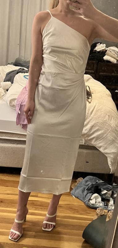 This dress was perfect for our recent engagement party! The dress fit perfectly as per the size guide on the website. It was super comfy, but also elegant at the same time. Highly recommend this dress! ** Only thing worth noting is that it may be worth using body tape instead of a strapless bra with the one-shoulder cut of the top.