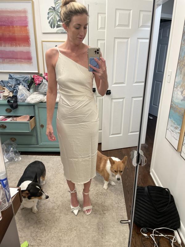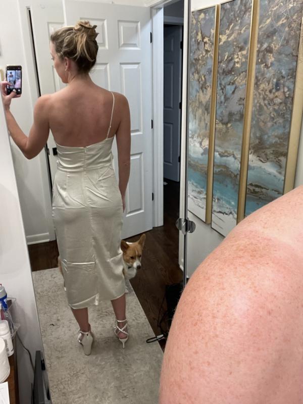 Loved everything about this dress: the color, the fit, the length, the material! Received so many compliments about it in my court wedding, even from the judge!