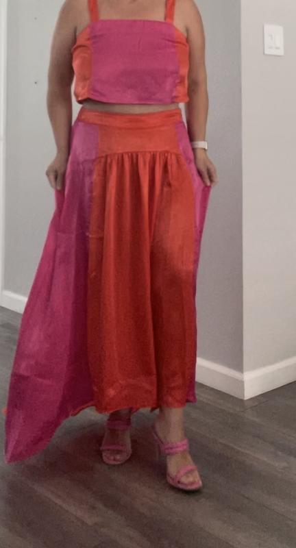 This set is STUNNING! I am obsessed with the colors. I can not wait to wear this out over the summer or on trips. It is very comfortable, fits great and is so light and airy.