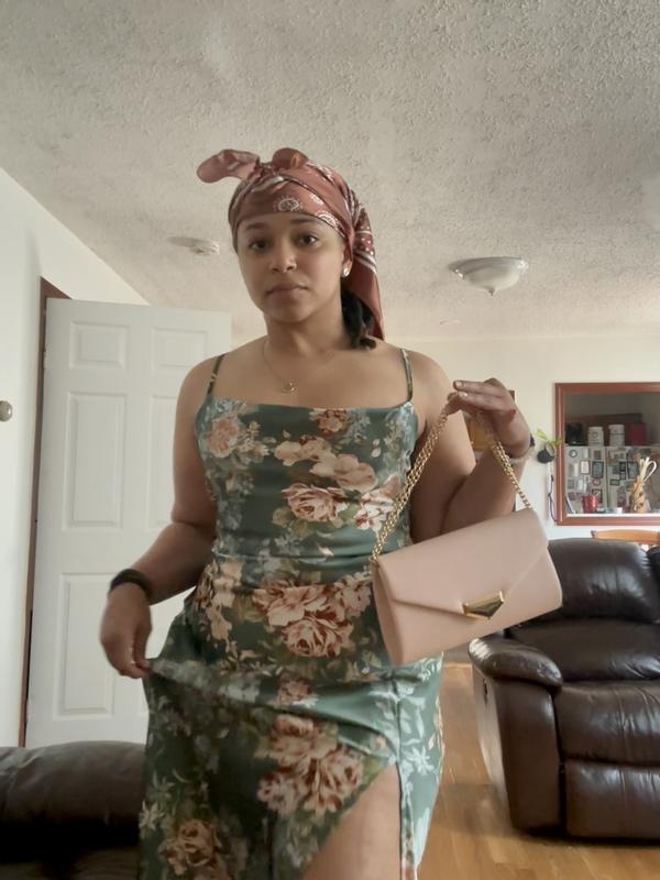 This dress is soo pretty and light weight and makes the perfect dress for a wedding. The only downside side of the dress are the straps. Since it’s a silkier material, the straps don’t stay in place well but if you had some clear fashion tape to put it between the straps, they would stay put just fine. Also, tall girl friendly! I’m 5’ 10” but if you don’t like a little leg moment the slit is higher on tall girls and hit me slightly above mid thigh.
