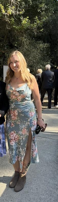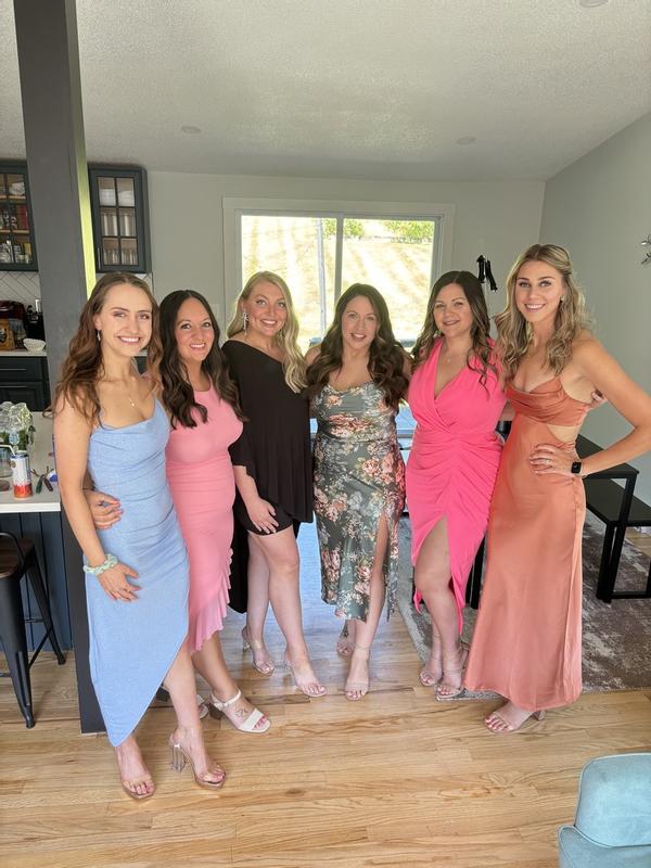 I am so happy I found this dress! I'm planning on wearing it to a spring wedding. It fits perfectly and hugs my body in all the right places! I have an athletic build so it's hard to find dresses that make me feel feminine with a figure. The adjustable straps and tie in the back really help configure the dress to my size and the slit is the perfect amount of sexy! So excited to wear this!