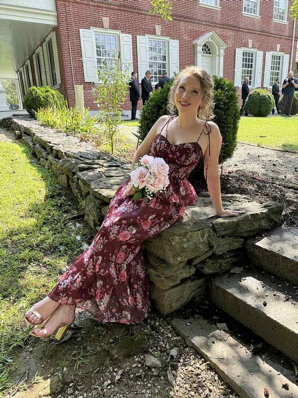 This dress is gorgeous and fit sooo well. I love that the straps are tied so you can make them as tight or as loose as you want. The colors look so good on and the style is amazing for a wedding.