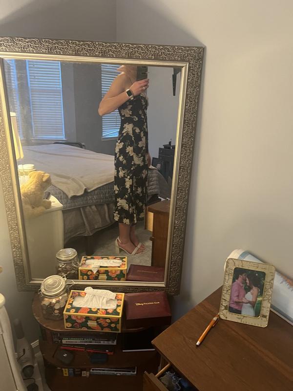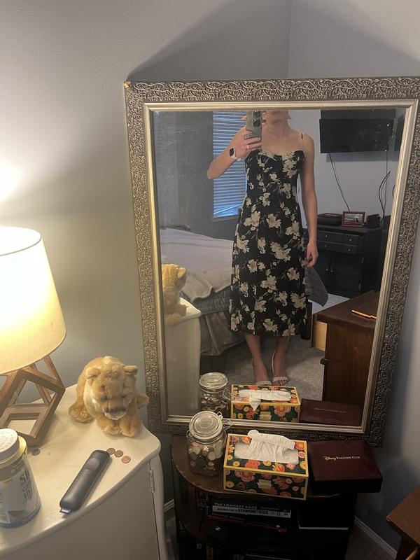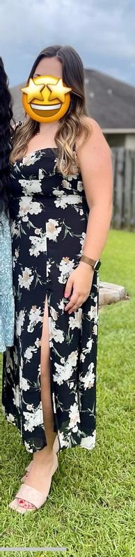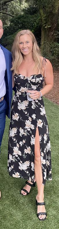 The dress is very pretty and flows nicely, but the bustier-style top was not proportioned correctly for me—either I had to tie the straps so the top was very low on my chest, or the bottom of the bustier was up on my boobs and the dress did not lay right. Would be a better fit on someone shorter (I’m 5’9”)/with a smaller chest!