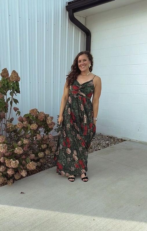 Love this dress. It fits perfectly and has adjustable straps. The fabric feels very luxe and soft. It’s not see through and moves beautifully with your body. I’m planning to wear this for Christmas, but love that the pattern is versatile for other seasons as well!