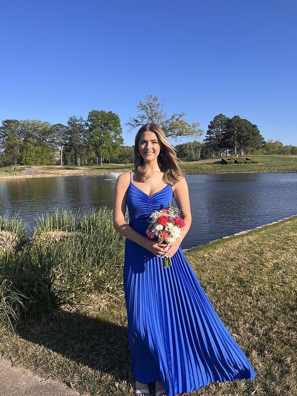 This is the most flattering dress. I love the color, style, and everything about it. Just a little long but I was fine with heels.