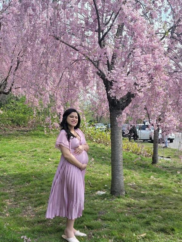This dress is beautiful! I love that I can wear it now being 20 weeks pregnant or even when I’m not pregnant. Very elegant, highly recommend.