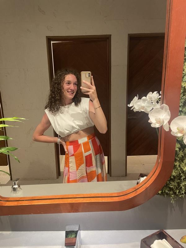 I was a little scared when I opened the package and saw small shoulder pads, but WOW was this shirt flattering! It is a super versatile shirt for summer—I’ve worn it to brunches, weddings, and date nights! If you have bigger girls, I may consider sizing up however!!