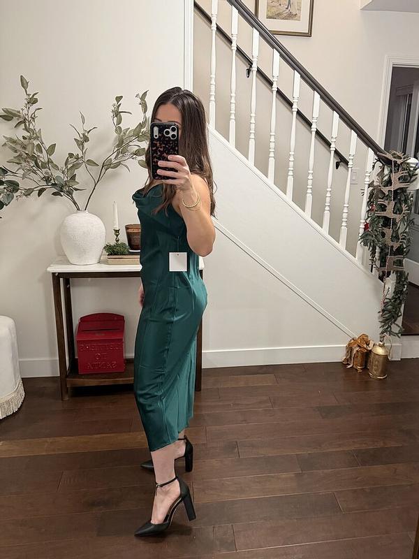 Beautiful deep green silk dress but it just didn’t fit my petite size very well. Ordered my normal size of 4 and needed a size 2. I also think this dress would look better on someone taller.