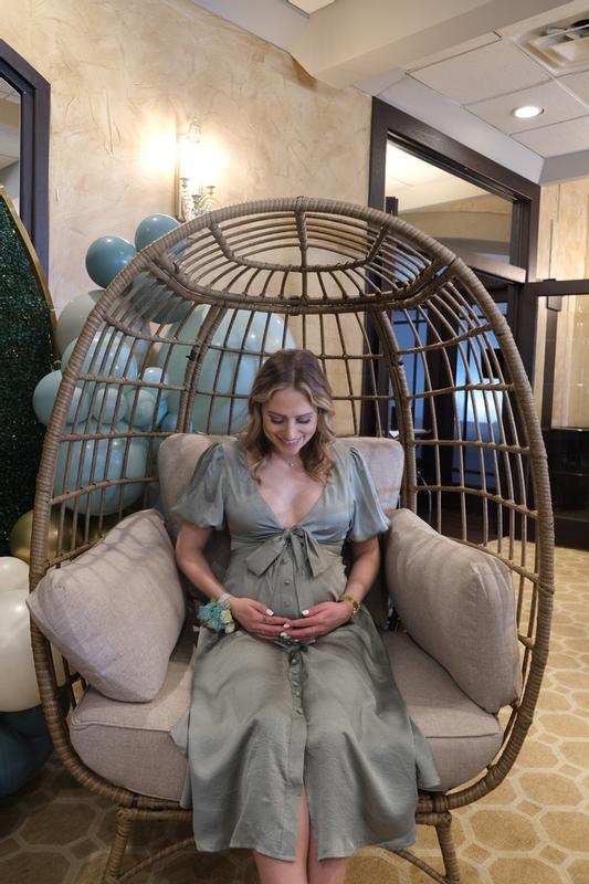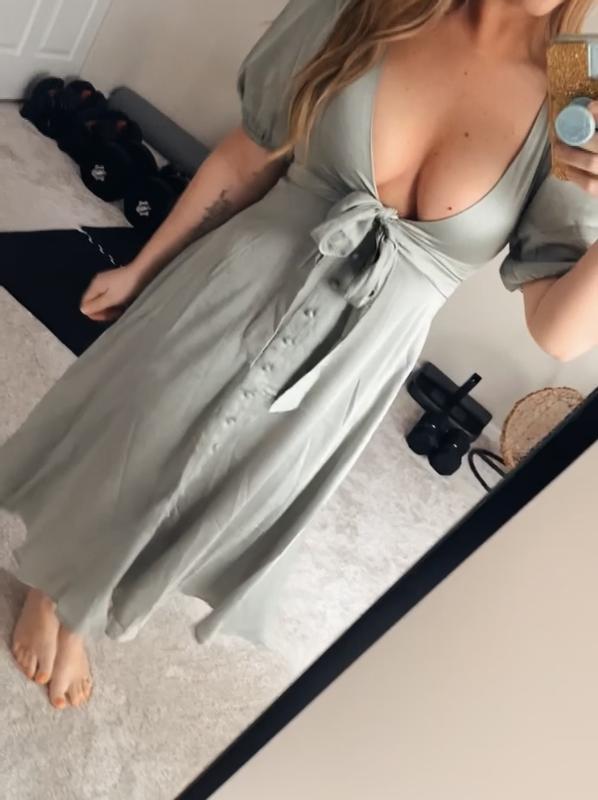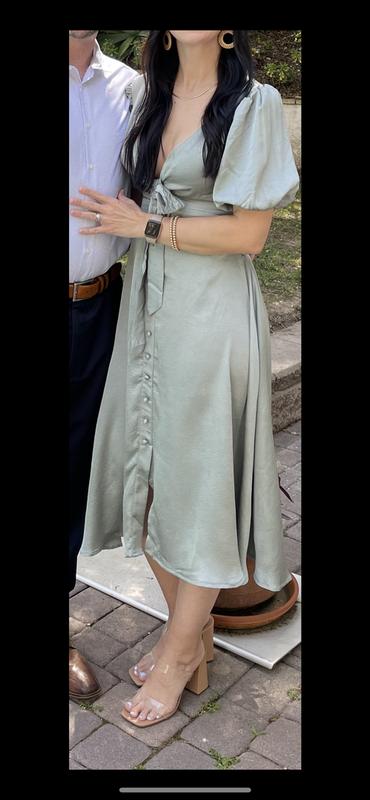 This was a super cute dress but the bow came down too far and exposed a lot more chest than I was hoping for. Also not bump friendly.