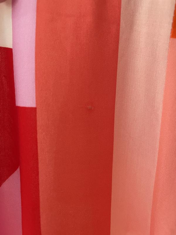 Probably not an issue if you're buying in-store, but these pants were hugely wrinkled when received via the mail. I'd need to buy a steamer, which I don't want to do for one pair of pants. Also, I'm 5' 10", so maybe not an issue for others, but the pants were too short, even in a size L. They fell at an awkward length that wasn't flattering. The colors are pretty. Wish the pants had worked out.
