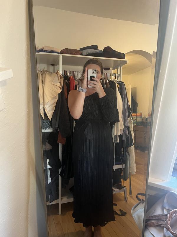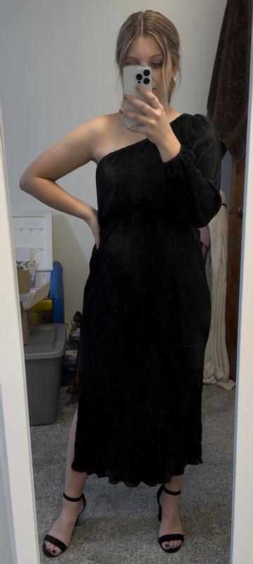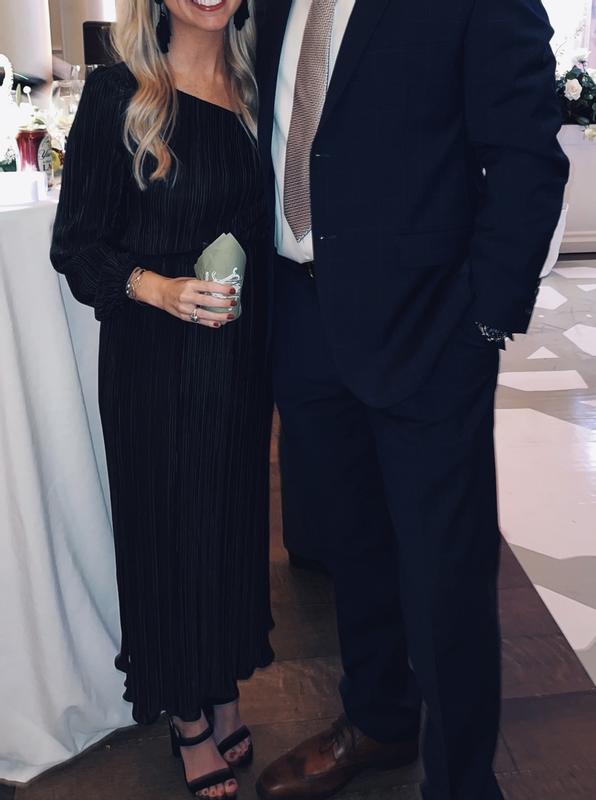 Loved the one sleeve and the fit of the dress. It was a perfect fit and loved all the compliments I got. It was the best between formal and casual for a Christmas party.