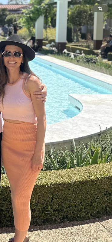 My only complaints would be that in person the dress colors are WAY muted compared to the pictures. The orangey skirt part is almost beige. Not that I wanted bright orange, I liked the idea of it being a pastel but it’s less than that. Also the top is a little see-through. For being a bit pricey, I would like a more solid material to prevent that since I wouldn’t wear a bra with this.