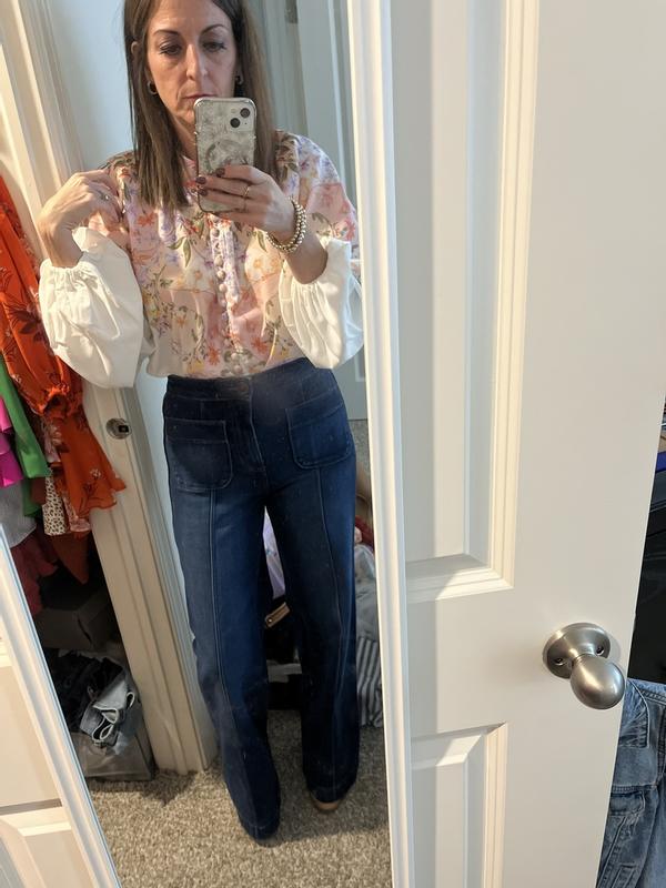 The top is cute with those flowers and colors but the sleeves are too long and it’s very baggy. The style is very unflattering. The sizes are not true. If you’re ordering it, atleast size down by 1 size.