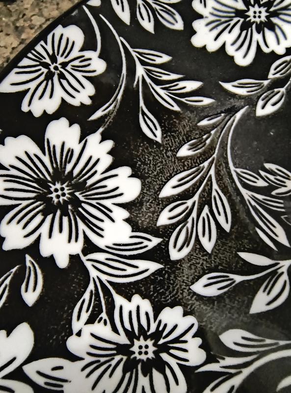 The design is nice but the quality of the paint is terrible some of the bowl dishes looks like dirty because the black paint was over sprayed on the white area