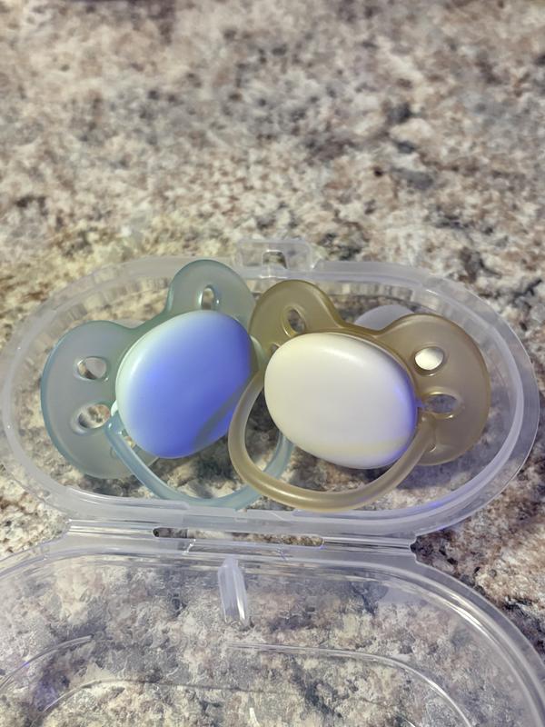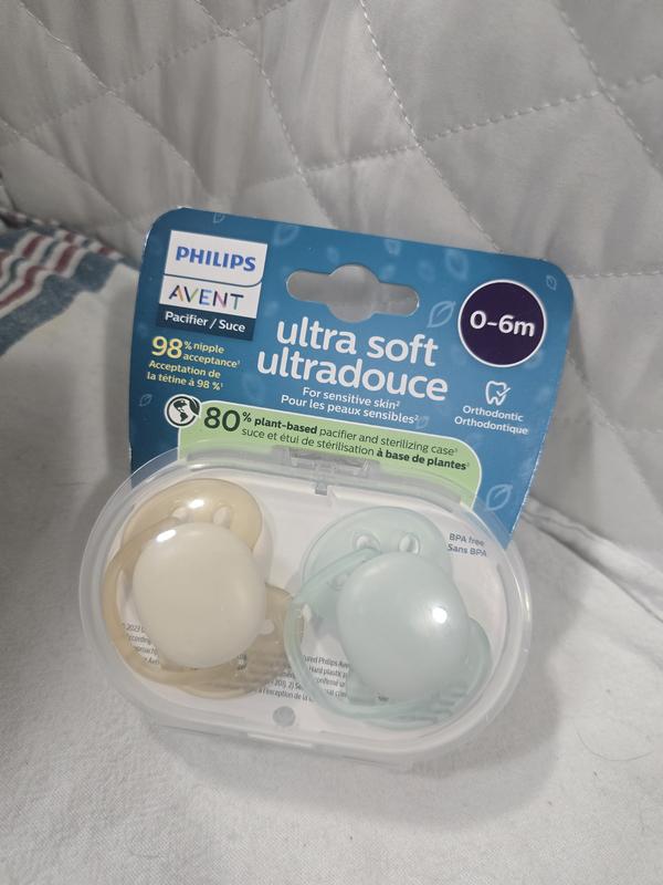 The ultra soft pacifier is light the colors are amazing . My twins loved them on the first try. It comes with a sterilizing case that you can use to clean the pacifier and to keep in storage whenever you are out . 80% plant based so it’s made with nicer and softer material for the baby face. The best pacifier on the market right now. I love these Avent pacifier that was received for my twins.
