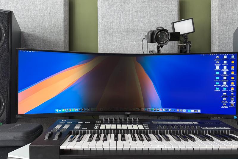 I have been using the monitor for several weeks connected via a USB-C to a Microsoft Surface Studio notebook. The USB-C powers and charges the notebook! Resolution is set 5120x1440 on the 49" screen and 2400x1600 on the notebook. I installed Microsoft's PowerToys app and am using Fancy Zones to divide the 49" screen into three logical partitions and the notebook into two. Color and resolution on the Philips is very good. I also am using the Philips' built-in camera for Zoom and Team meetings. It works very well. I have connected a Jabra speaker/mike via one of the screen's 3 USB-B ports (as the built-in mike could be better. The built-in speakers are fine. I highly recommend this monitor.