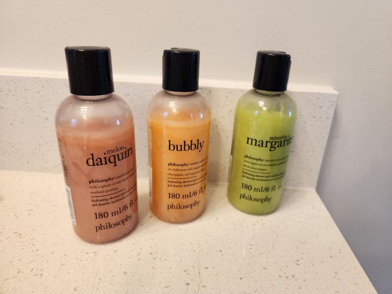 I recently tried Philosophy’s Bubbly, Margarita, and Daiquiri, and I’m in love with all three. The bottles are the perfect size, so easy to pack and take along. I brought them on a trip with my husband, and we both fell in love with the fresh, uplifting scents. Fun, refreshing, and just the right touch of luxury wherever you go.