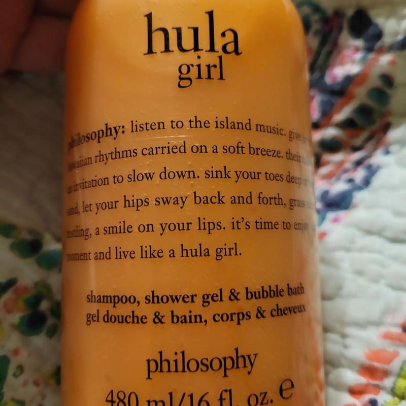 I got Hula Girl when it was first introduced years ago! This shower gel from Philosophy is so refreshingly scented like a light, luscious berry. It is wonderful to shower or shave or wash my hair!!!