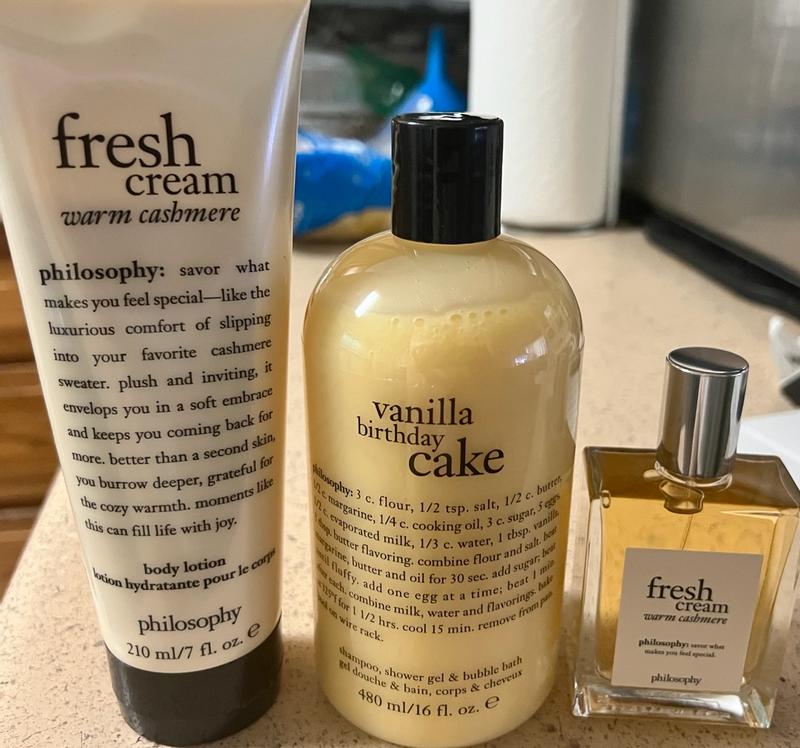 Philosophy is one of my favorite brands. The lotions smell so good and last all day too. The scent does last with my perfumes when I apply it on my skin.