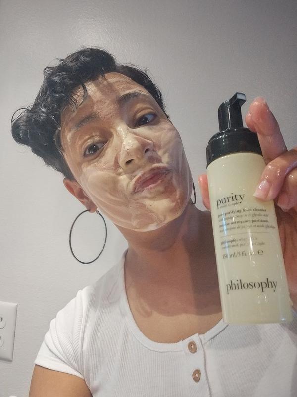 I am a 40-year-old woman with very sensitive skin, especially facial skin, which is prone to oil and acne due to PCOS. This soap keeps my skin free of excess oil. It's been over a year I have been using the foam cleanser; before, I used to use the creamer/liquid version. I been using Philosophy for 22 years, and I am constantly told I look like I am in my twenties. Very grateful for this brand - I am an original Hope In A Jar girl.
