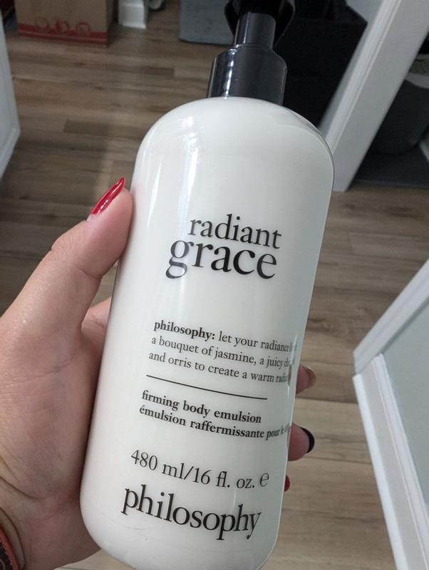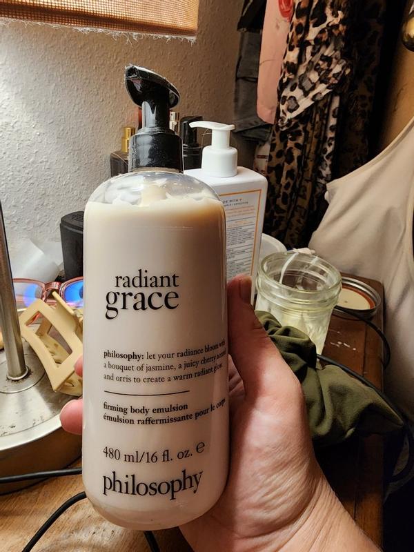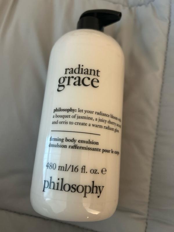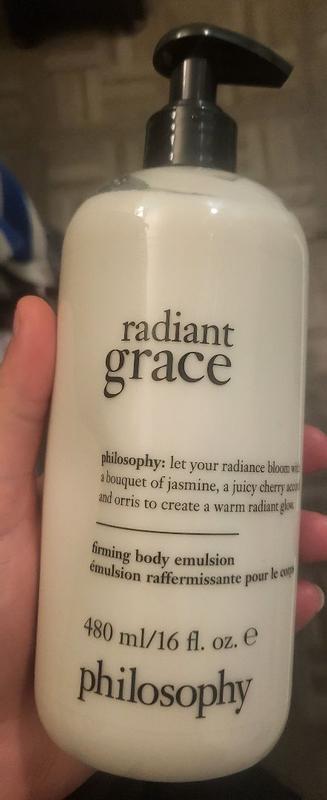 Radiant Grace is a wonderful fragrance. It stays on me all day. Many people stop and ask me what I am wearing. I haven’t received this many compliments since the original Amazing Grace came out so many years ago. I have all of the Grace fragrances, but this one will be my go to from now on. Let’s just hope the formula doesn’t change like Amazing Grace did! Philosophy hit the bullseye with this one!!