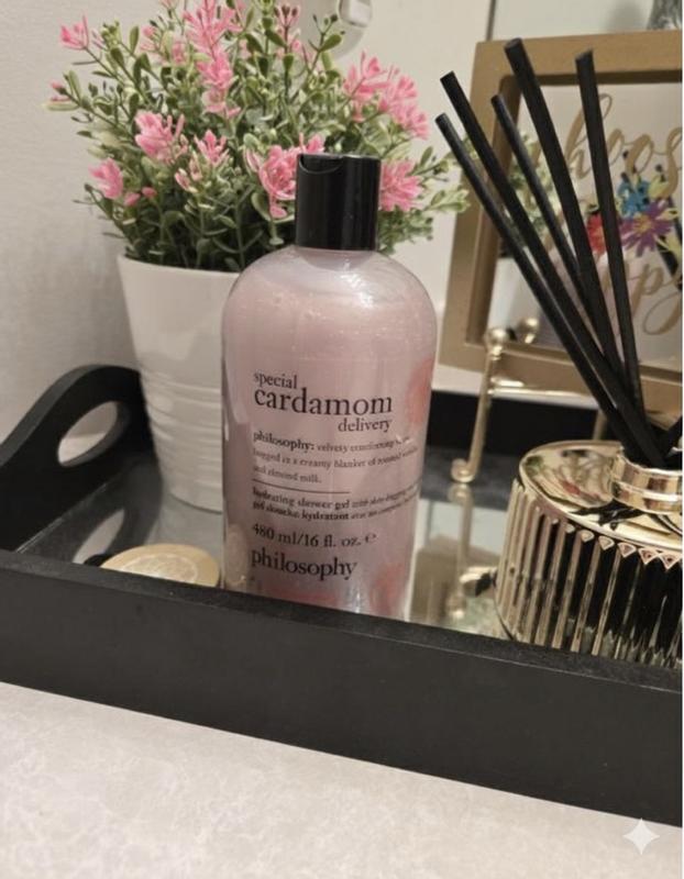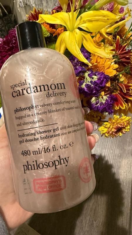 The philosophy special delivery cardamom hydrating shower gel has a warm, cozy scent with notes of cardamom, toasted vanilla, and almond milk that feels comforting without being overpowering. The formula is hydrating and gentle, using philosophy’s skin-conditioning ingredients to cleanse without drying the skin. It lathers well, rinses clean, and leaves skin feeling soft and smooth, making it easy to recommend for anyone who wants a nourishing daily body wash with a comforting, elevated scent.