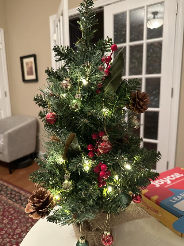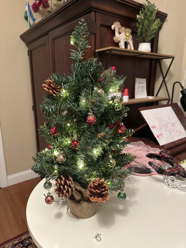 Pine, Pinecone and Berries Artificial Christmas Tree with Lights and Bendable Branches, 24"