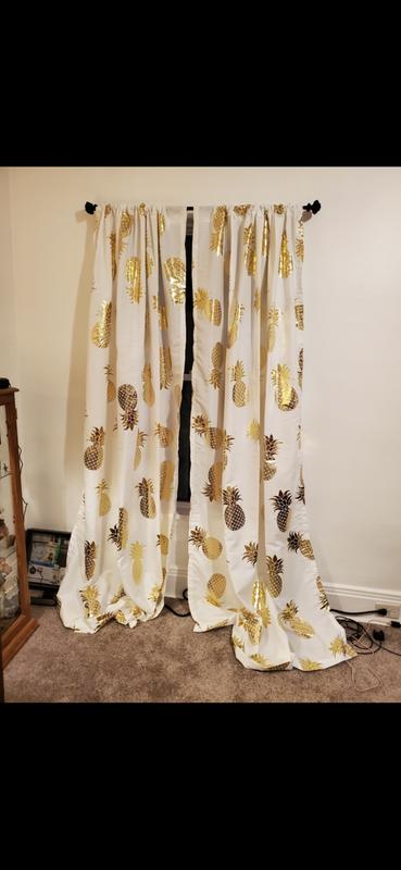 Really loving these curtains! I love pineapples in general but the way the light hits the gold is just stunning. I really like the material of the curtains themselves. They seem to be super durable and will last a good while. They really brighten up my living room and is always a conversation piece.