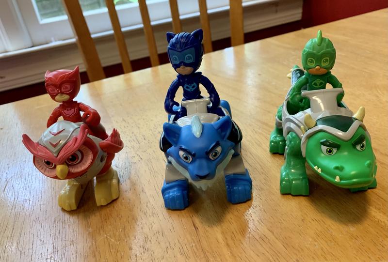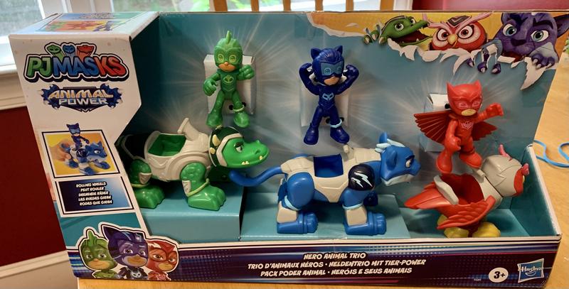 My 5 year old son is a huge pj masks fan so he loves this pj masks Animal Power Hero Animal Trio. It has his three favorite characters, catboy, owlette and gekko in thier super hero costumes and they each have an animal ride with wheels. He and his friends can all play together with a different character and he is entertained for a long time.