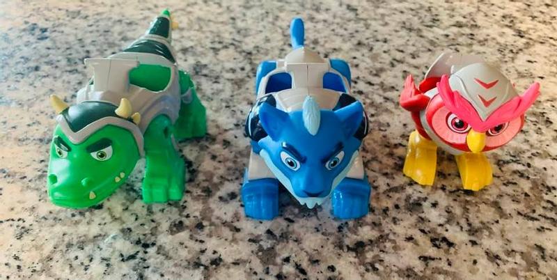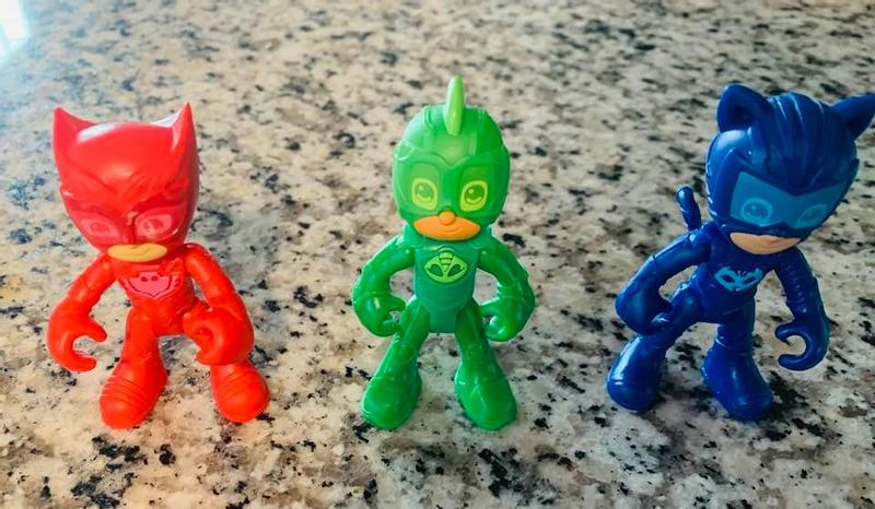 I recently received this PJ Masks Animal Power Hero Trio. My kids love characters/toys! I love that the main hero trio can fit with any of the three animals they came with. I love that Owlette's wings are removable (magnetic). However, I would prefer if the both sides of the wings were moveable not just one side. I like that the animals have wheels on their feet, which allowed for easy gliding/rolling. The only issue that I and my kids experienced playing with these toys are that the characters' hands didn't easily hold on to the handles of the animals they're paired with and that paint/whatever is used to color the toys somewhat easily scratched off. Overall, fun character toys that allow for open ended/imaginative play.