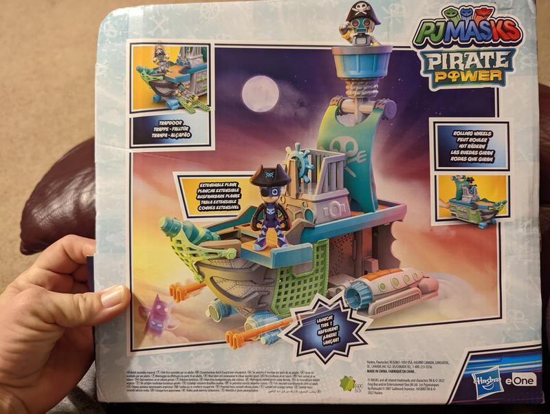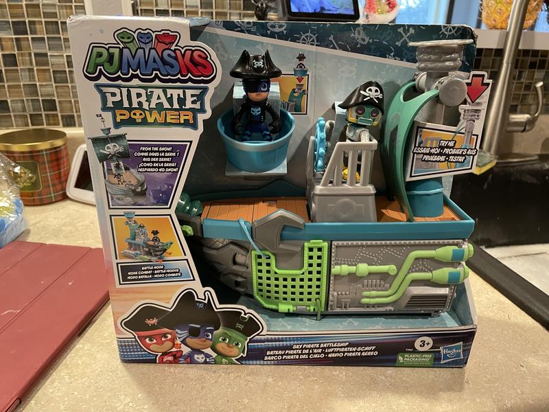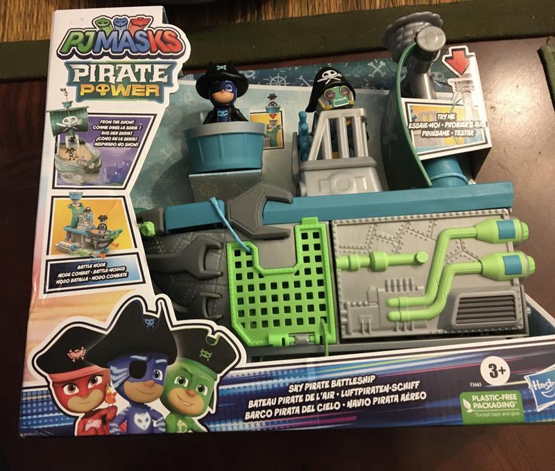 This PJ Masks Sky Pirate Battleship is a great toy for endless hours of fun. Easy to get out of package and set up. Comes with pj masks figurines and a neat secret trap door. You can make them "walk the plank" and much more! My son loves this toy! Highly recommend for many hours of imagination play!