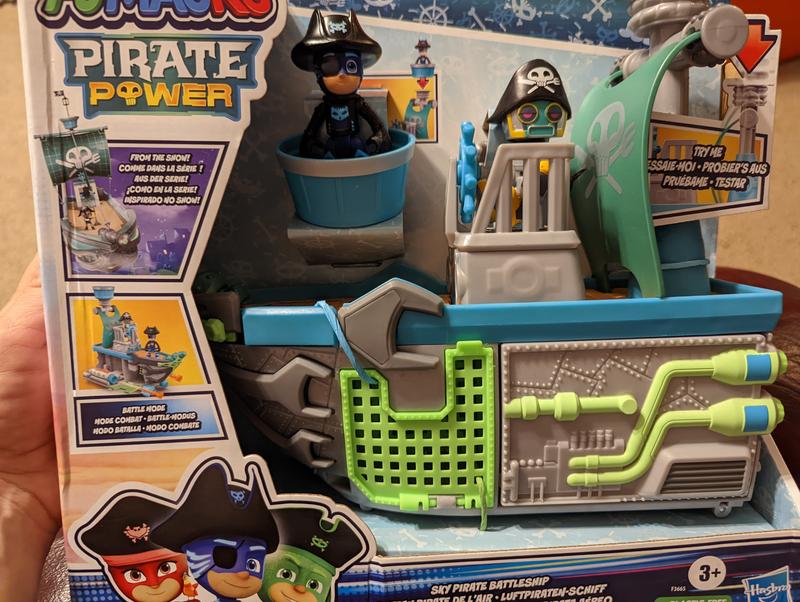 My little guy loves PJ Masks, and this is one of his new favorites! The sky pirate battleship is complete with characters, and a trap door battleship to grab trespassers! The pirate ship can shoot out small missiles from each side of the ship to protect its treasures. My son has been battling it out with not only the characters that came with this set but using other figures to play the parts of villains on the sea. This set is a lot of fun!