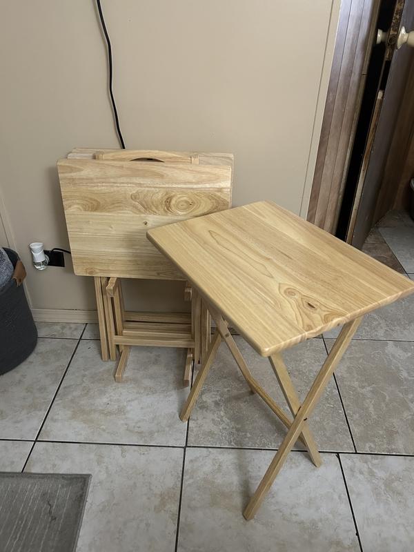 These folding tv tray set is exactly what I have been looking for. Not only does the honey oak finish match perfectly with our other decor but they are also very sturdy. The small storage rack keeps them nearly in the corner when we're not using them.