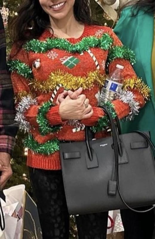 This sweater has to be the worst item I have ever purchased at Macys. And I purchase most of my clothing through Macys. The quality was very cheap, rough and not true to size. The decorations on the sweater were not completely attached. Some fell off before even putting on sweater. Others were not completely sewn on. The decorations on one sleeve were stapled on. I bought this sweater to wear for work on Ugly sweater day. I wish I didn't wait to day of to try. Definitely my worstttt purchase Macys . What a let down for a Macys fan!