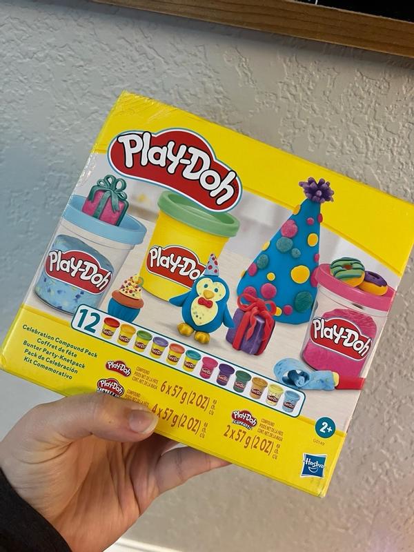 Play-Doh party pack! 12 soft containers that can be great as individual party favors, stocking or Easter basket stuffers. A 12 pack is perfect for one or a few children. 6 are solid neon colors, 4 are metallic and have a glittery shine, and the last two are birthday confetti colors. Awesome squish and nostalgic smell.