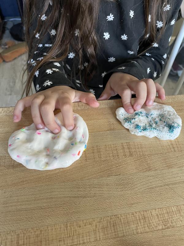 firstly, it’s the perfect sensory experience for my toddler. he just got into slimes and this one was easy to play with. usually slime sticks to hair and hard to come off but this one has an easy fix. now my only problem is consistency of the slime itself and it claims it has scents (like cinnamon apple) but no one in my family can smell anything different. I wish play-dog would come with an activator spray because it loses its elasticity after one play-through. we went back to the container and the slime was now a breakable rubber. unfortunately we don’t know where to get slime activator near us except to order from online.