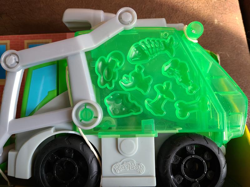 The play doh garbage truck is fun and very entertaining. My three year old son just loved this toy. He plays with it a lot. The smelly scent play doh is he favorite to use to make the trash. Has trash molds, the truck and comes with play doh as well a one smelly trash smell.