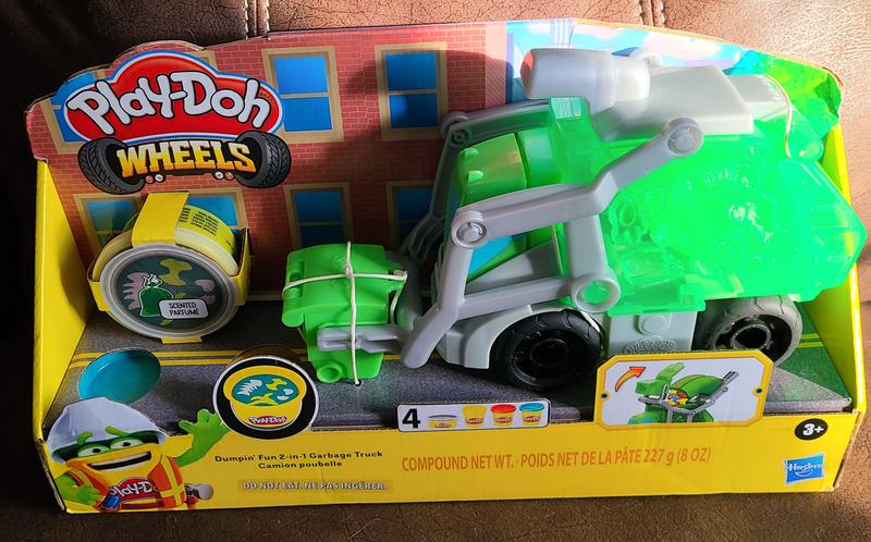 My son definitely enjoys playing with Play-Doh Wheels Dumpin' Fun 2-in-1 Garbage Truck. Our favorite part is garbage-scented compound that is really stinky, which makes this play more fun and real! My son had added this dumping truck to his city pretend play collection and entertains himself for hours. I love that the play-doh compounds don't stick to the garbage truck' trashcan, no need to worry about dried doh leftovers.