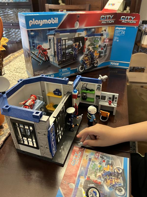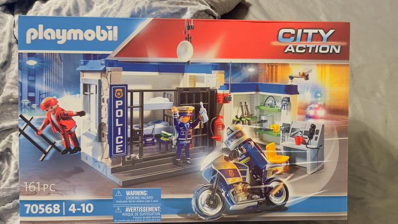 This Playmobil prison escape set can provide hours of fun. This set includes two police officers, and prisoner. Includes the prison building and one motorcycle. Assembling makes for a great family activity. I would recommend.