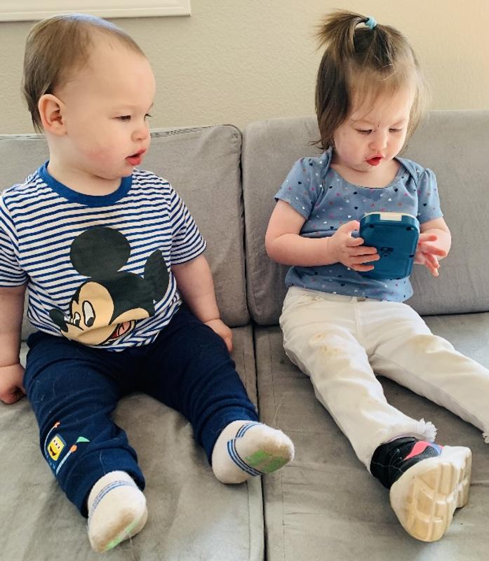 If your child loves playing with your phone, give them this age-appropriate toy instead! The many features and sound effects are great for dramatic play and it's the perfect size for small hands to manipulate. Our kids especially LOVED hearing the pre-recorded sounds of familiar voices.